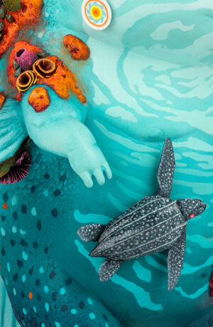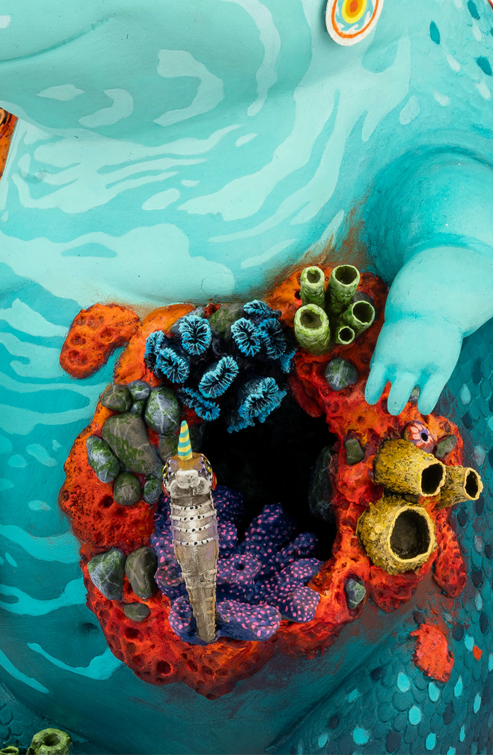This piece is entirely handcrafted in resin, painted with acrylic paints. Includes pieces that fit together with magnets.