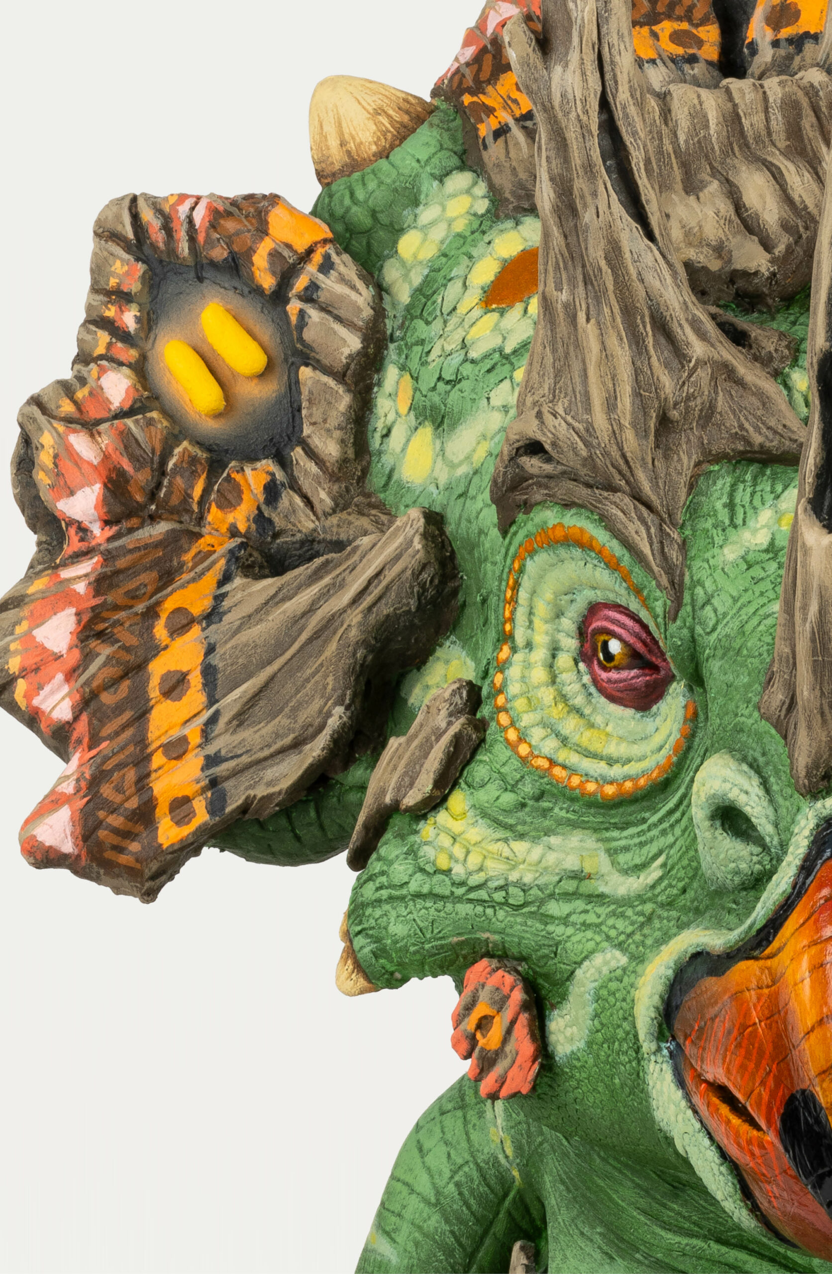 This piece is entirely handcrafted in resin, painted with acrylic paints. Includes pieces that fit together with magnets.